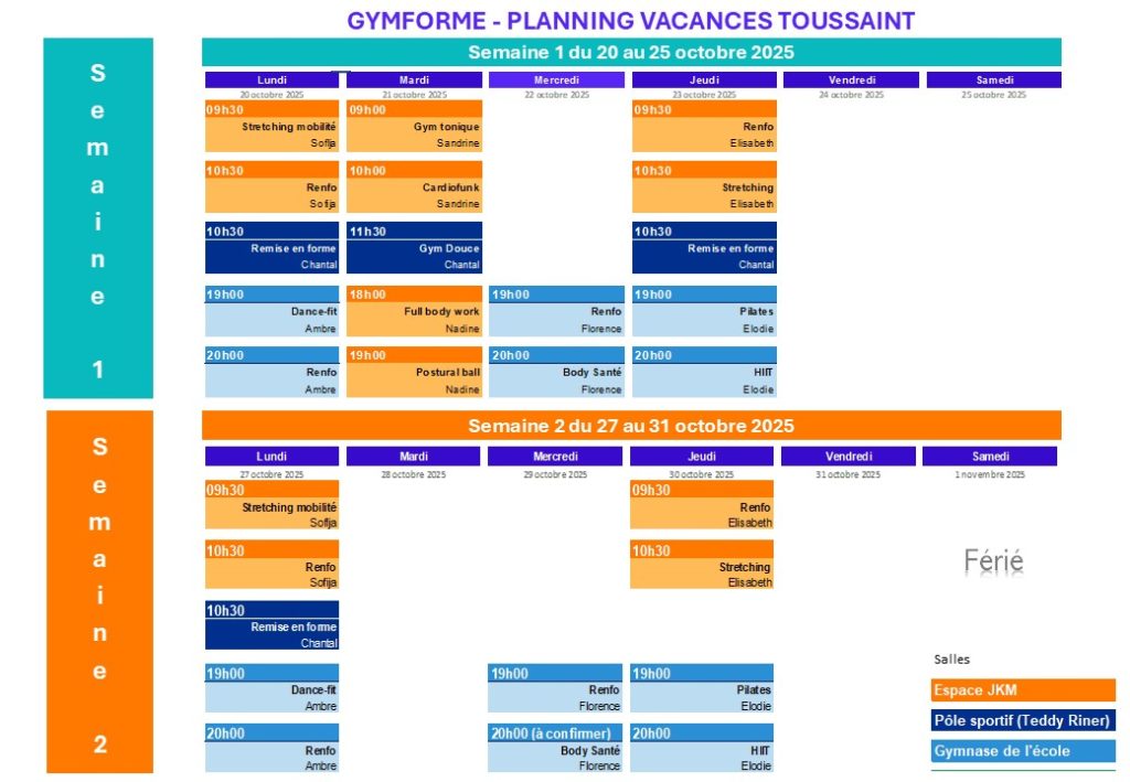 Planning vacances de la Toussaint